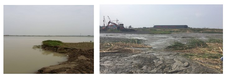 图 5.4泥浆池原状和排水后的泥浆池