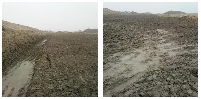 通过对现状土进行掺石灰处理后的路基,经检测路基CBR、压实度、沉降指标均能达到《公路路基设计规范》要求。表明该资源化利用方案是可行的。相关应用实况如图5.4粉土路基改良,图5.5粘土路基改良。