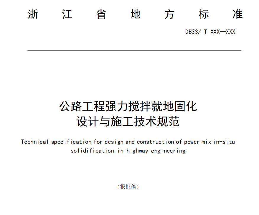 贺:今年以来,汇壹(上海)环境岩土科技有限公司参编的新制订《公路工程强力搅拌就地固化设计与施工技术规范》已报批。